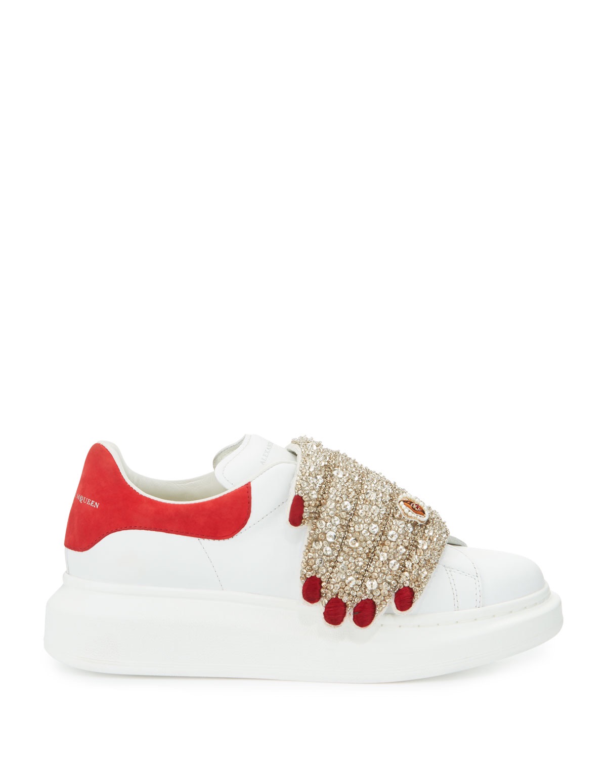 The bejeweled hand was first spotted on the Alexander McQueen sneaker, and now Gucci has featured the crystal encrusted hand with ring appliqué on their slides.