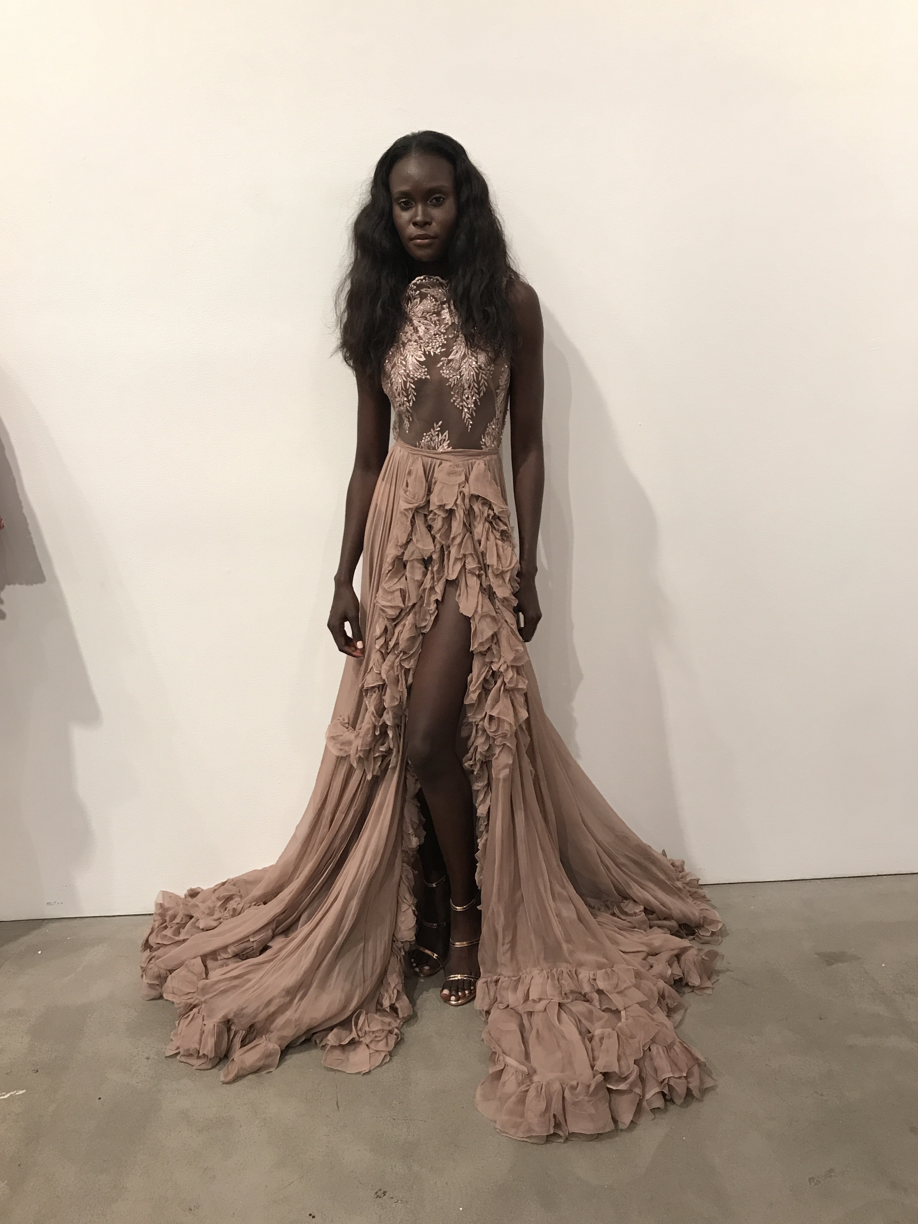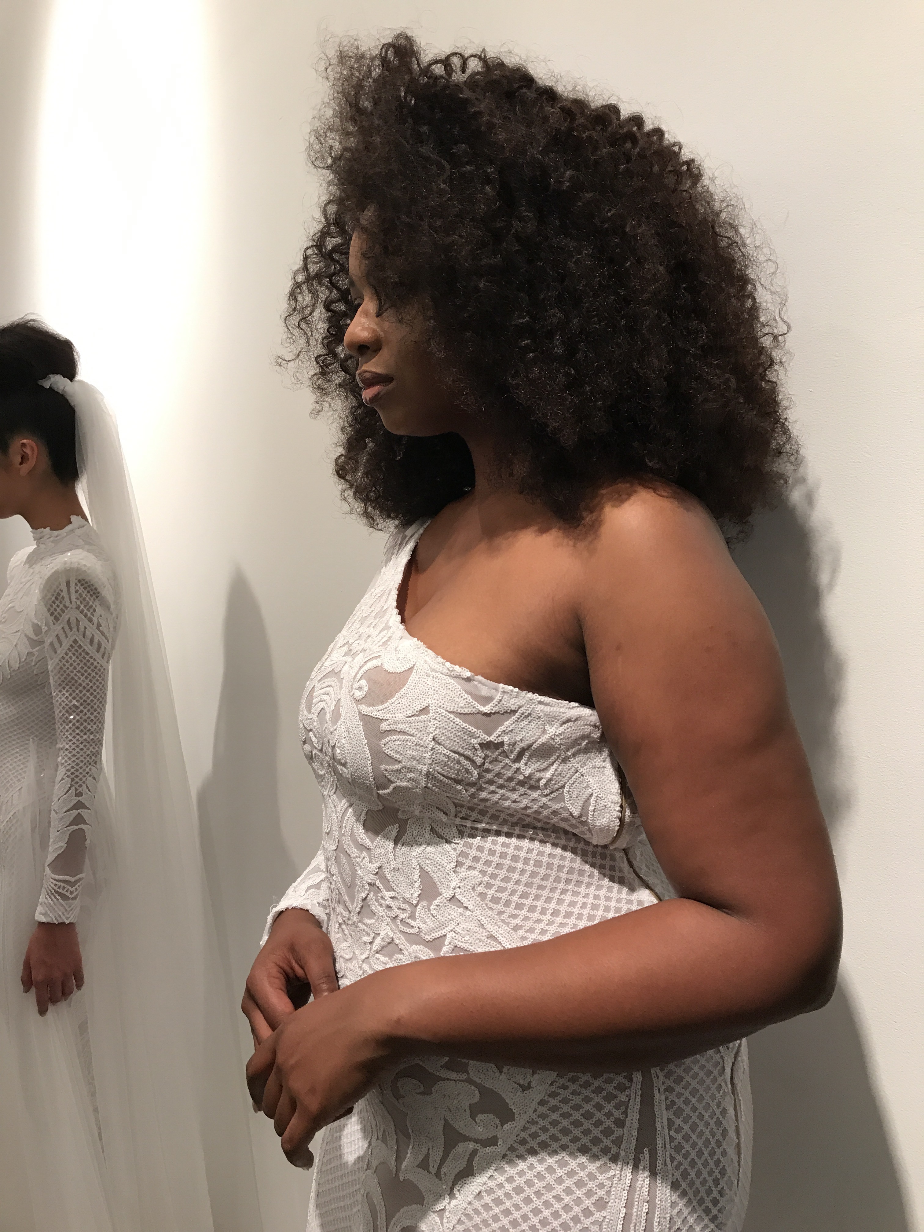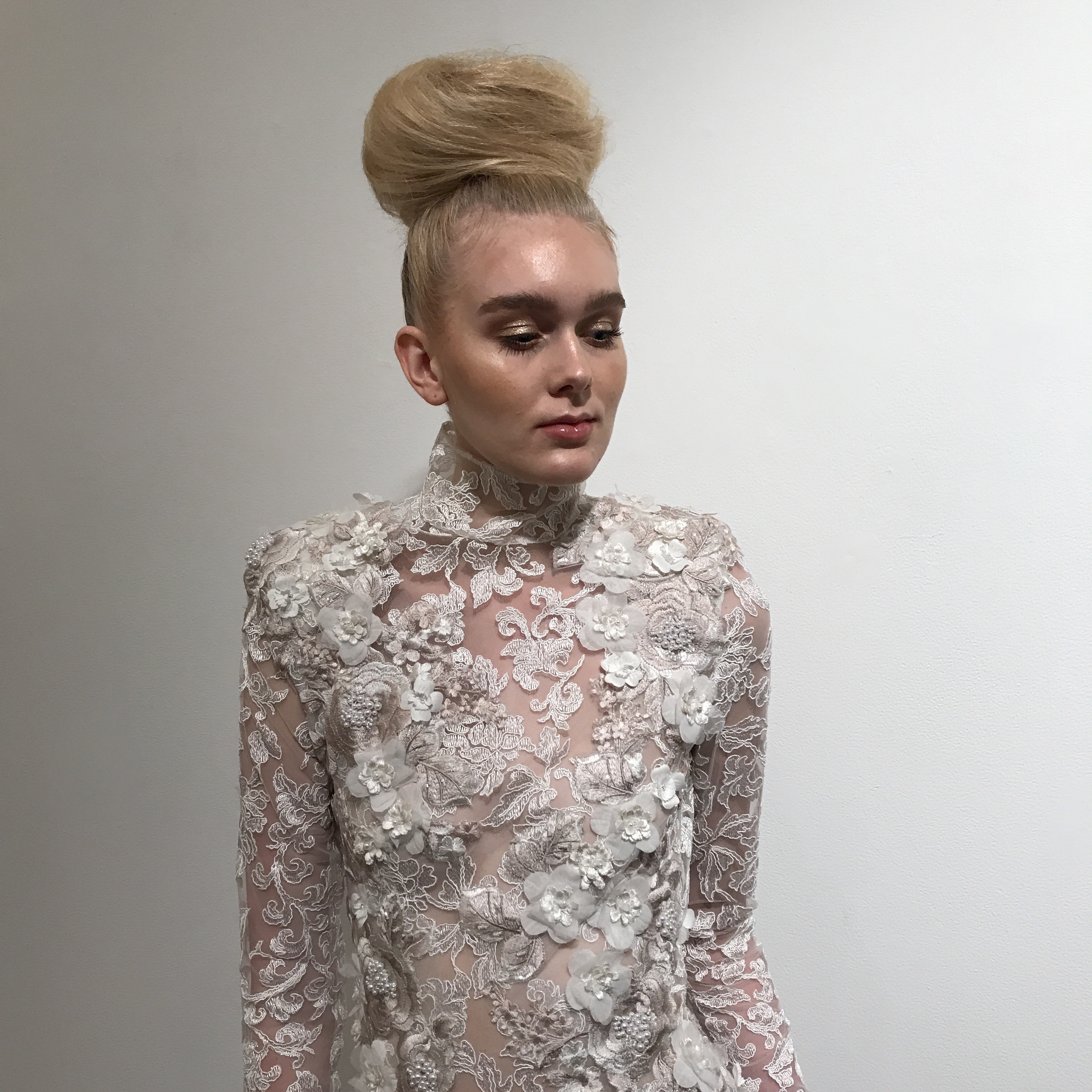 Tracy Nicole was the second collection to show, and she surely impressed. The designer stayed true to her simplistic and classic design aesthetic. The side ponytail with wire wrapped detail was an excellent touch.