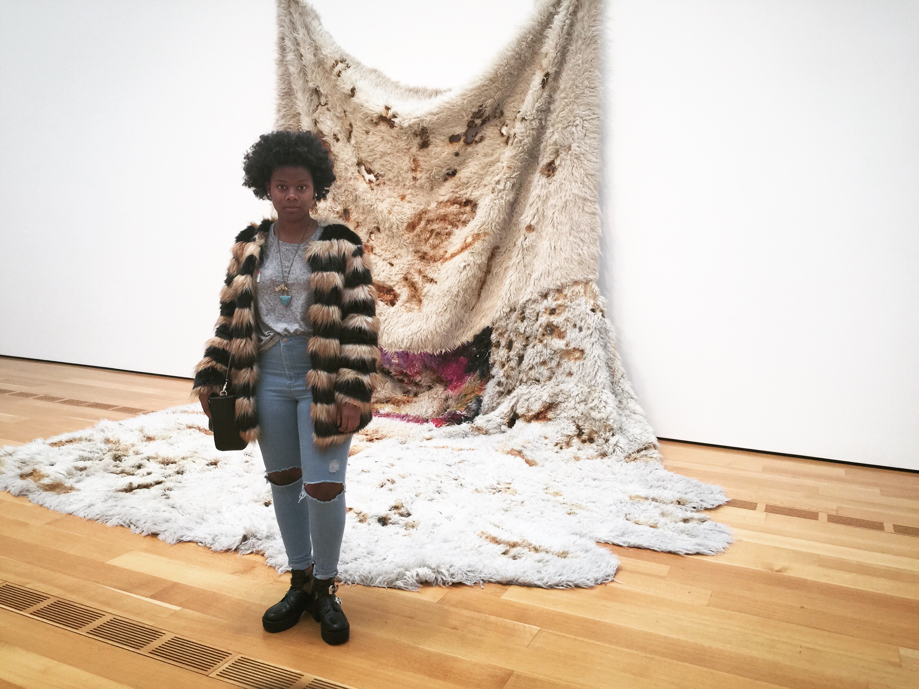 We purchased these golden kitten heels from Barney’s and added a touch of fur for that wow factor!